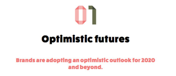 美國和中國可能是世界上最焦慮的兩個(gè)國家了。但是當(dāng)所有人都在談?wù)摻箲]的時(shí)候,我們應(yīng)該開始謹(jǐn)慎的樂觀。樂觀不是自欺欺人,而是開誠布公,再積極的做出改變。用一個(gè)詞來形容這種情緒,就是達(dá)觀。傳遞積極樂觀情緒的品牌會(huì)越來越受歡迎。