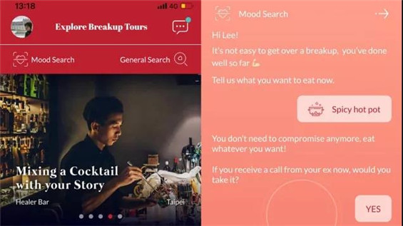 位于香港的創(chuàng)業(yè)公司Breakup Tours ( 失戀傷心旅行有限公司)在2019年11月剛剛上線測試版本的app,收到了外媒廣泛的報(bào)道。這個(gè)app的創(chuàng)意起源來自于2018年一個(gè)多品牌的聯(lián)合廣告,幫助剛剛分手的人找到旅行的慰藉。廣告播出后取得了超出預(yù)期的反饋,有超過650個(gè)人寫信來分享自己的分手旅行故事。于是Breakup Tours的團(tuán)隊(duì)在情人節(jié)的時(shí)候組織了一場分手人士互相溫暖的活動(dòng),在這次活動(dòng)再去取得驚人的熱烈反響之后,創(chuàng)始人Stephen Chung意識(shí)到通過旅行幫助更多心碎的人有著巨大的需求,于是從一個(gè)營銷事件發(fā)展出了這家創(chuàng)業(yè)公司。