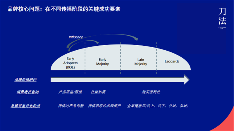從銳到鈍的這個過程,需要品牌持續地圍繞著其核心的價值主張來講一個故事,打動消費者底層的情感和人格訴求。
