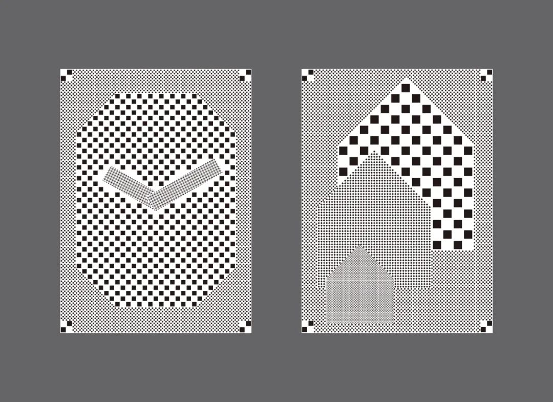 印刷品通過網點密度的不同再現形象,但該作品僅由畫面整體為40%的網點構成。因此,如果摘下眼鏡或遠離眼鏡,就會變成平坦的灰色面,在道理上看不到主題。