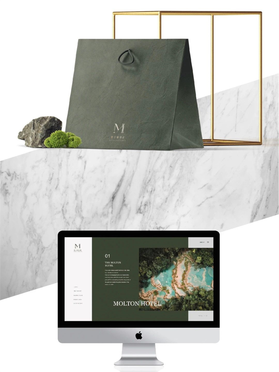 墨爾頓是一家源自澳洲的商旅度假酒店,本次項目需完成墨爾頓酒店品牌策劃設計,創作品牌LOGO設計和品牌形象設計,幫助其建立差異化視覺形象,傳遞品牌價值,提高品牌認知度。本案創意設計團隊以墨爾頓酒店的首字母“M”作為超級符號,將古希臘文字與古典的羅馬柱結合,用現代抽象化語言,以輕盈柔美的曲線線條勾勒芭蕉葉的結構,與澳洲現代文化里的輕盈、舒適的生活方式相對應,代表著墨爾頓傳達的現代生活方式。