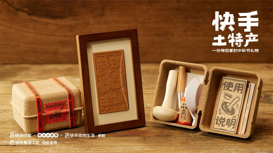 2023年快手中秋禮盒包裝設計還采用了環保的紙漿盒,最后也會降解,回歸于土。