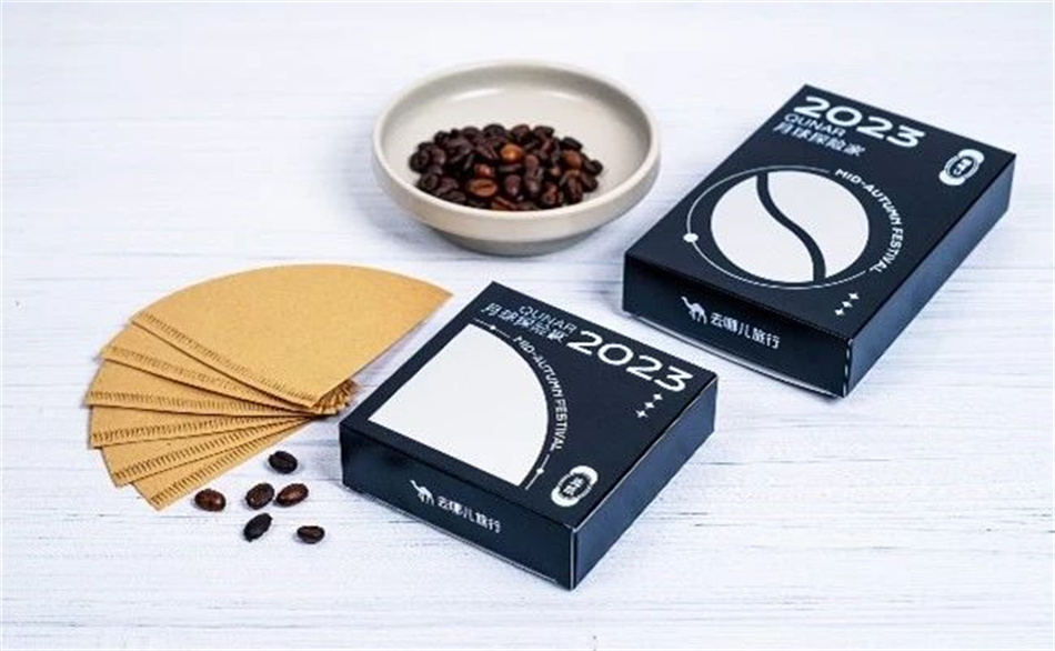 今年去哪兒中秋禮盒包裝設計的主題為“月球探險家”。手沖咖啡套裝含香醇咖啡豆、手動磨豆器搭配手沖咖啡壺,不管是從City Walk還是到Gap Hour,手舉一杯咖啡總是時髦人的標志。