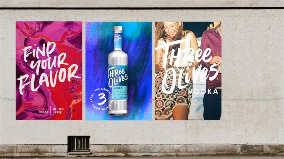 Superfantastico為Three olive設計的伏特加酒包裝設計風格體現了一種輕松生活方式的精髓。大膽的手繪標志設計和充滿活力的圖形設計成功地將品牌的干凈配方并列在一起,與目標受眾想要打破傳統規范的愿望產生共鳴。