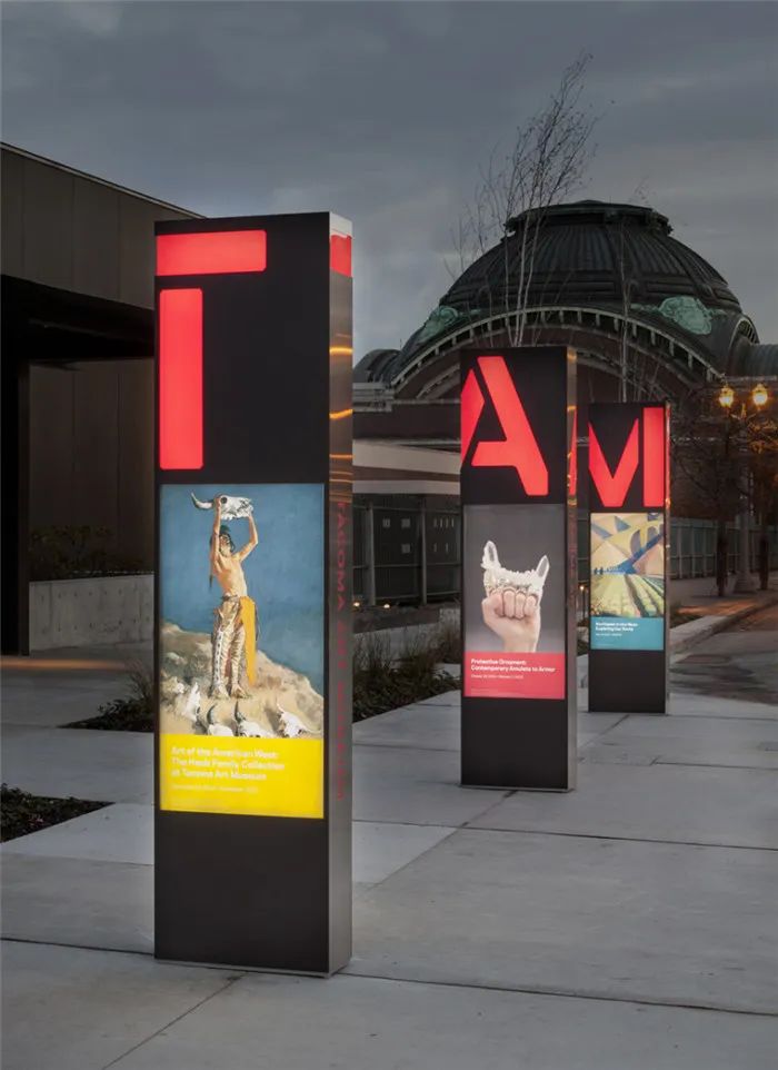 塔科馬藝術博物館(Tacoma Art Museum,簡稱:TAM)是華盛頓州最重要的藝術博物館之一。明亮的不銹鋼與暗黑的工業鋼、TAM標志性的紅色品牌顏色進行鮮明的對比,簡單優雅的博物館導視系統設計加強了塔科馬藝術博物館在國內外的形象,并促進吸引更多樣化的訪客。