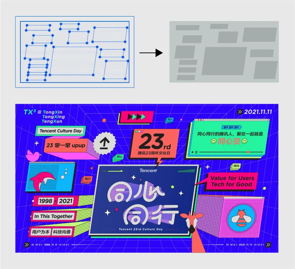 以“三切布局”為例,應用于騰訊品牌物料延展中。