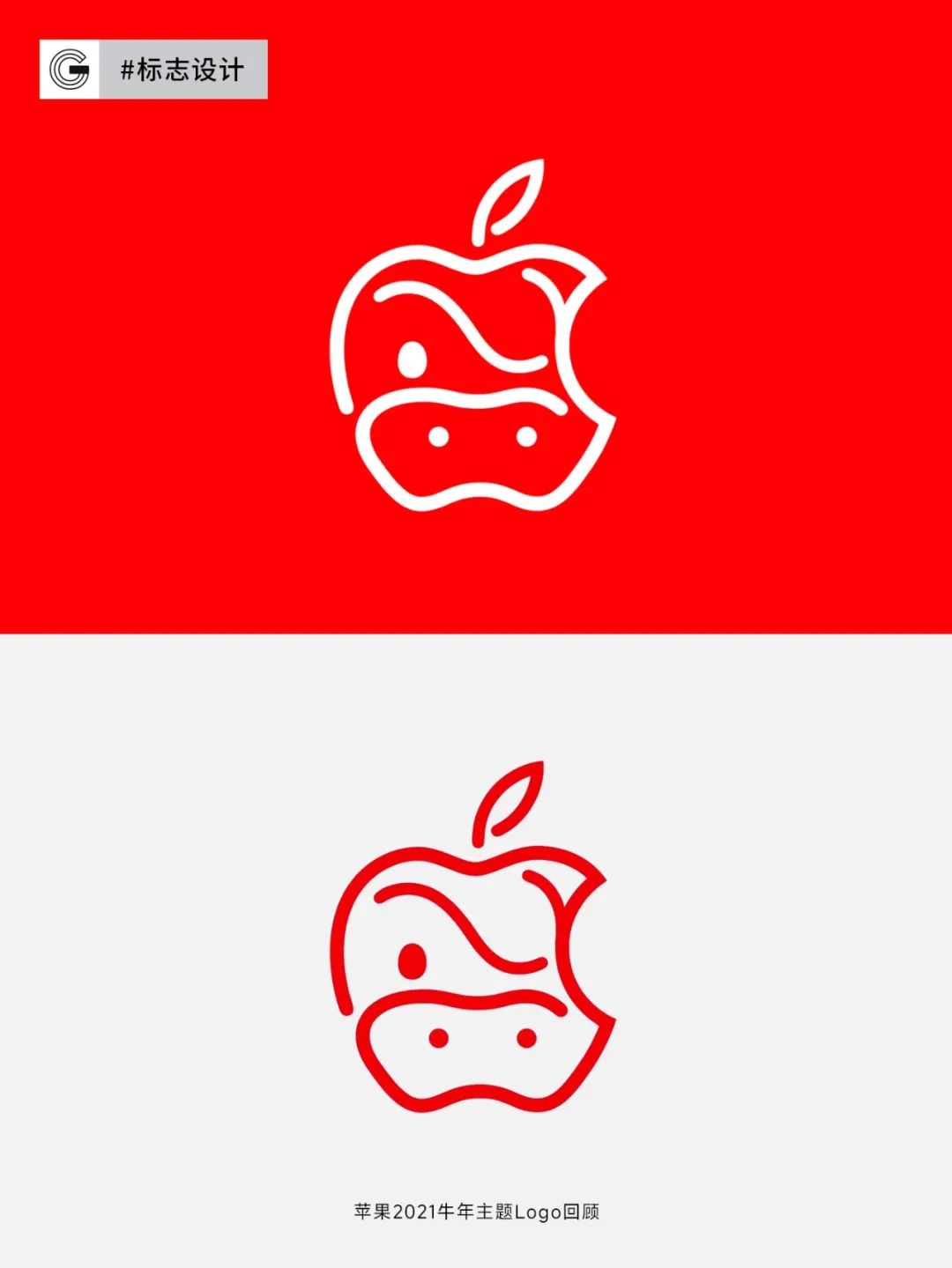 值得一提的是,這也是蘋果自2021牛年(圖6)以來,連續4年發布將Apple品牌標志與生肖相結合設計的新年主題視覺形象Logo設計。而且今年的主題logo設計形式也和往年大不相同,更首次采用了金色作為整體品牌形象設計的主題色。