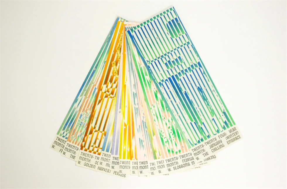 《四季年歷》設(shè)計(jì)作品的創(chuàng)作旨在以中國(guó)的二十四節(jié)氣中自然的關(guān)系為年歷設(shè)計(jì)靈感,通過(guò)視覺(jué)元素“窗戶”的概念,一窗一景,以漸變、實(shí)驗(yàn)性和富有趣味性的字體設(shè)計(jì),深入挖掘字體在視覺(jué)傳達(dá)中的潛力。設(shè)計(jì)師勇于挑戰(zhàn)傳統(tǒng)字體設(shè)計(jì)的限制,運(yùn)用漸變效果來(lái)喚起四季更替的感覺(jué)和情感共鳴,以字體作為媒介來(lái)反映人與自然的互動(dòng)與共存。