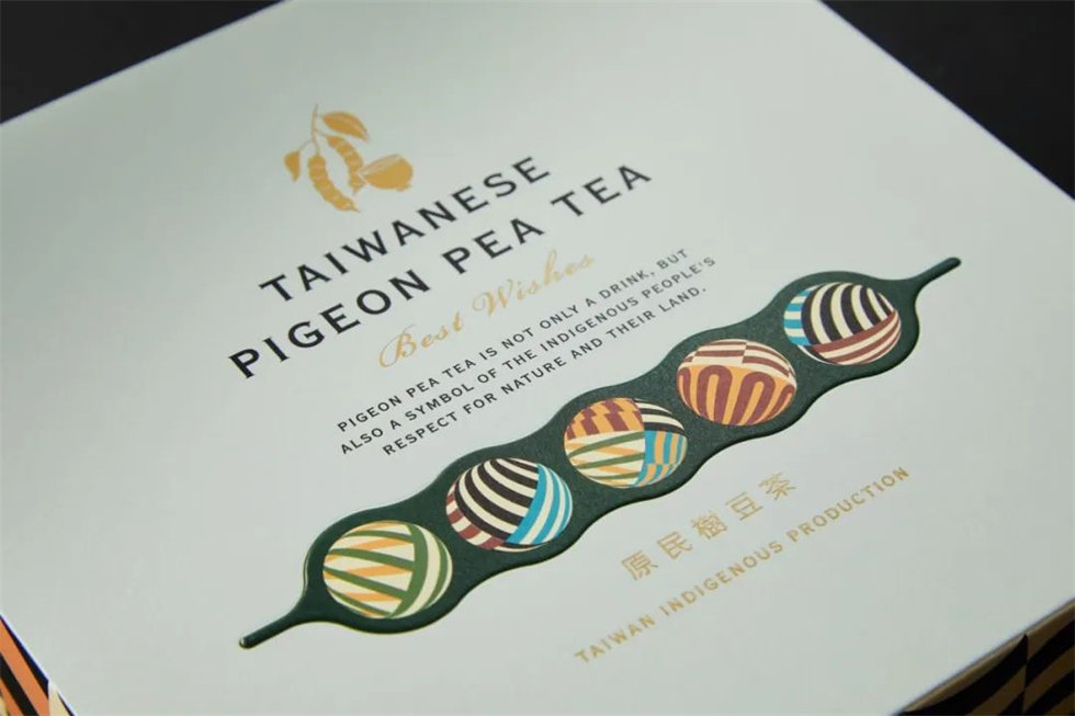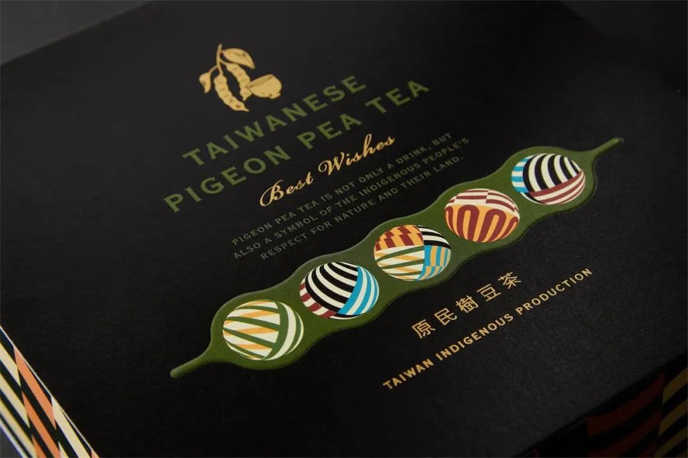 樹豆茶禮盒的包裝設計理念源于排灣族文化,將其古老的智慧與現代生活融合,呈現出獨特的禮品魅力。禮盒內含樹豆茶包與琉璃珠,象征著對豐收與幸福的祝福。