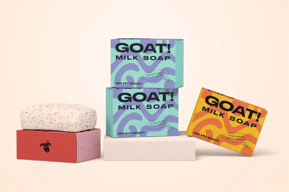 OH MY GOATI羊奶皂包裝設計上獨特的圖形,傳遞手工羊奶皂的樂趣和年輕的氛圍
