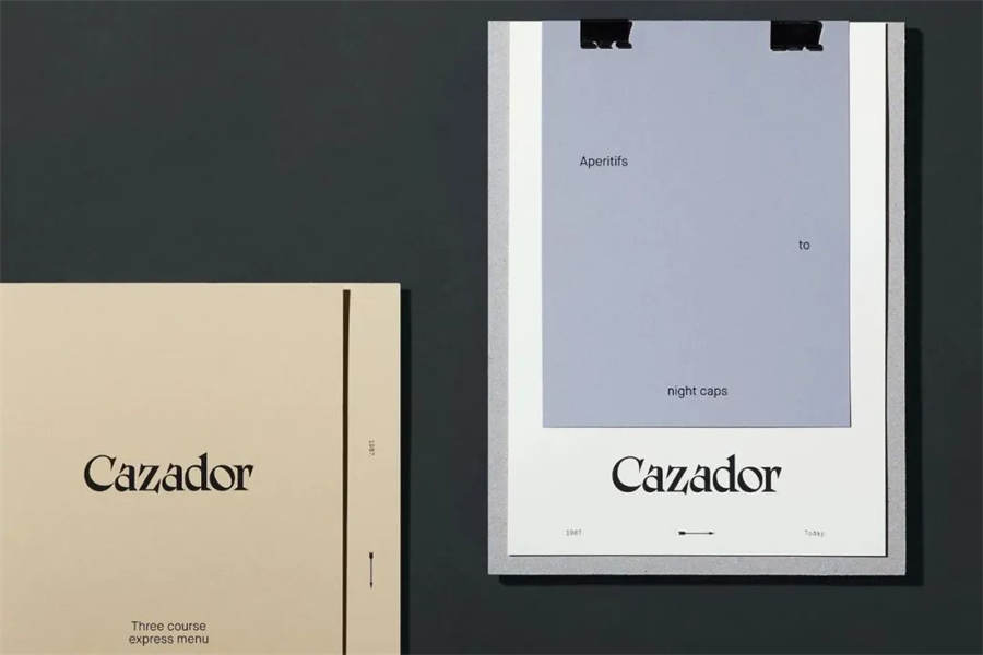 Cazador家庭經營餐廳新的品牌標志設計帶有一些古怪的特征,例如刀狀鑿子和借鑒自鹿角的襯線,這反映了餐廳獨一無二的氛圍。為了向過往致敬,之前徽標中的箭頭被繼續使用在組合中,還添加了“成立于1987年”字樣,彰顯餐廳驕傲的歷史。