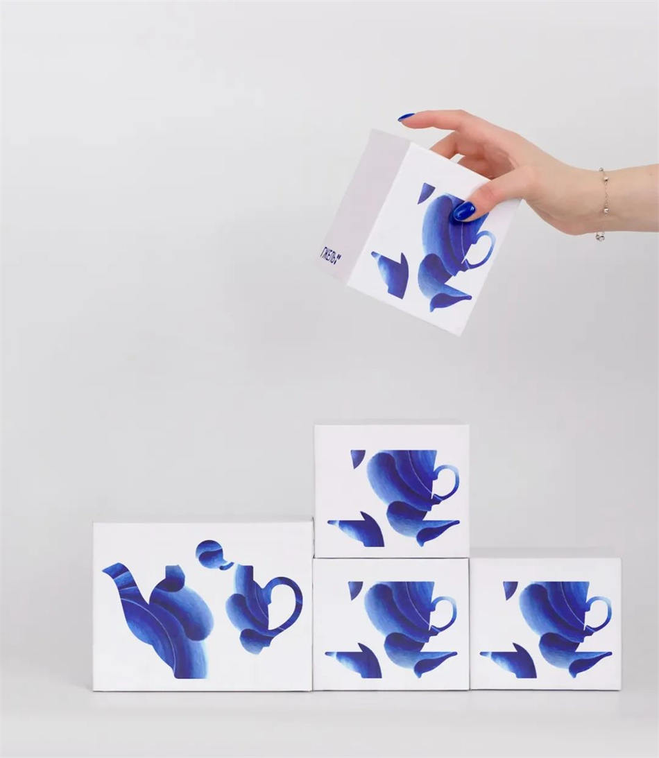 Gzhel協(xié)會(huì)的更名結(jié)合了過去和現(xiàn)在、傳統(tǒng)和現(xiàn)代。藍(lán)色,但不枯燥,有序,但混亂,簡(jiǎn)單和通用,它在平面和體積上都很酷。在這里,圖形顯示產(chǎn)品的形狀,無論是海報(bào)上的插圖設(shè)計(jì),盤子還是品牌T恤,白色作為動(dòng)作的正式參與者。