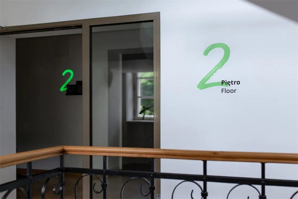 為了傳達出對瑪麗亞最偉大的成就的敬意,Blank Studio想出了一個簡單的想法,將波蘭居里博物館標識導視設計成在黑暗中發出特有的綠光(這是鈾的典型特征)的形式。Blank Studio使用了一種發光涂料(最初用于標記逃生路線),它可以在正常的日光條件下“收集”光線。在黑暗降臨后,它會發出特有的綠色光芒——它可以創造一種神奇的效果,在博物館之夜產生“令人驚嘆的影響”!