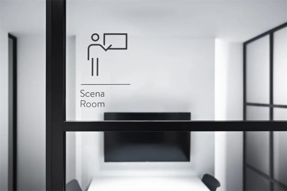 FORMA為每個(gè)房間開發(fā)了信號(hào)系統(tǒng)和象形圖,Simon指定它們應(yīng)該打印在切割的乙烯基上,并在白色墻壁,木材和玻璃上工作。