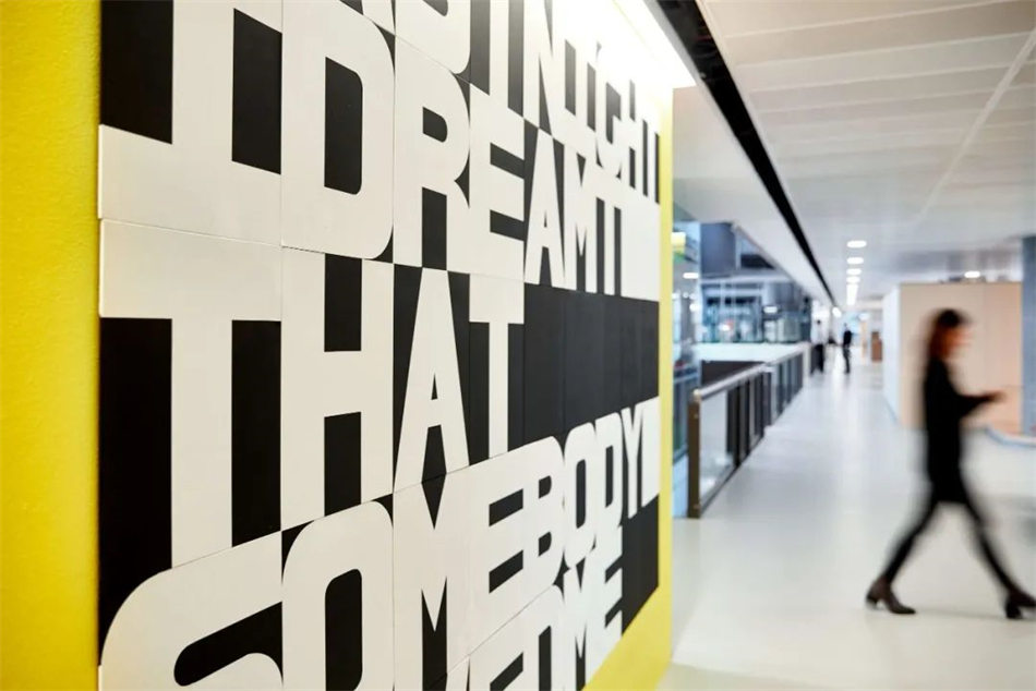 除了藝術(shù)與科學(xué)之間的相似之處之外,每件藝術(shù)品都體現(xiàn)了Roche全球品牌敘事中的不同主題和價(jià)值觀——?jiǎng)?chuàng)造一個(gè)具有影響力和參與感的空間,旨在激發(fā)創(chuàng)造力、表達(dá)自由和大學(xué)工作空間。