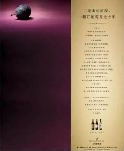 5、三毫米的旅程,一顆好葡萄要走十年。(長(zhǎng)城葡萄酒)