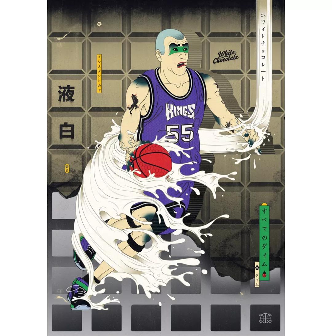 澳大利亞的藝術總監Andrew Archer,出于對日本文化與NBA的喜愛,畫作中,他巧妙地將籃球元素運用在藝妓的傳統和服上,又或者是直接讓他們穿上球衣,就連后頭背景的小細節沒放過,除此之外,Andrew更會將球星以浮世繪方式呈現,包括了Stephen Curry、Klay Thompson、LeBron James、Russell Westbrook,還有剛完成球衣退役儀式的黑曼巴Kobe Bryant。